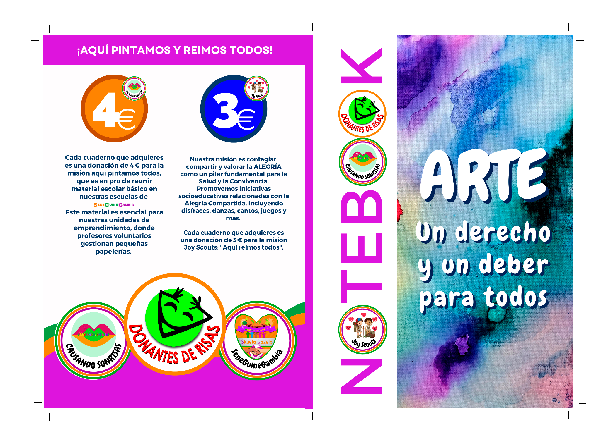 Cada cuaderno que adquieres es una donación de 7€ euros para la emisión de material escolar básico en nuestras escuelas. Este material es esencial para nuestras unidades de emprendimiento, donde profesores voluntario gestionan pequeñas papelerías. Nuestra misión es contagiar, compartir y valorar la alegría como un pilar fundamental para la salud y la convivencia, promovemos iniciativas socioeducativas.
