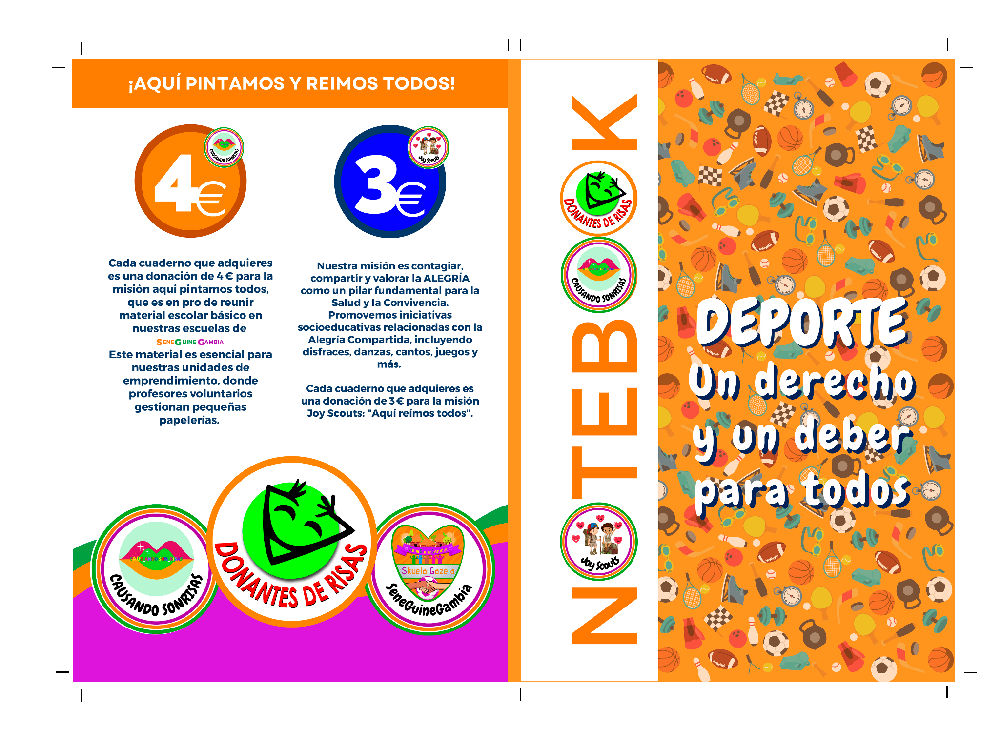 Cada cuaderno que adquieres es una donación de 7€ euros para la emisión de material escolar básico en nuestras escuelas. Este material es esencial para nuestras unidades de emprendimiento, donde profesores voluntario gestionan pequeñas papelerÃas. Nuestra misión es contagiar, compartir y valorar la alegrÃa como un pilar fundamental para la salud y la convivencia, promovemos iniciativas socioeducativas.